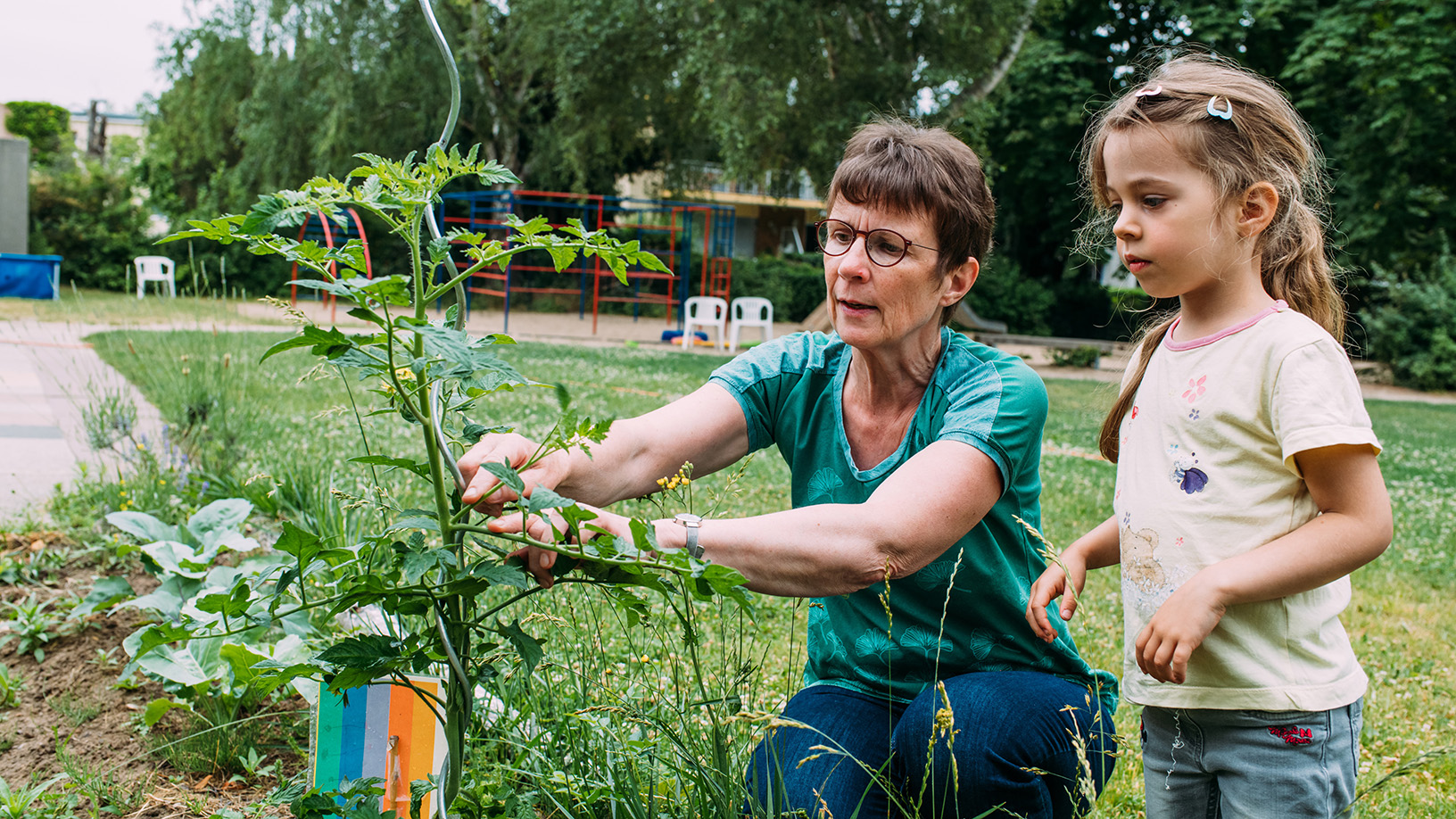 Die Kinder ernten, probieren und verarbeiten gemeinsam mit den Erzieherinnen und Erziehern das Gemüse. Gesunde und schmackhafte Ernährung und das Verständnis von Jahreszeiten werden so erlebbar.
