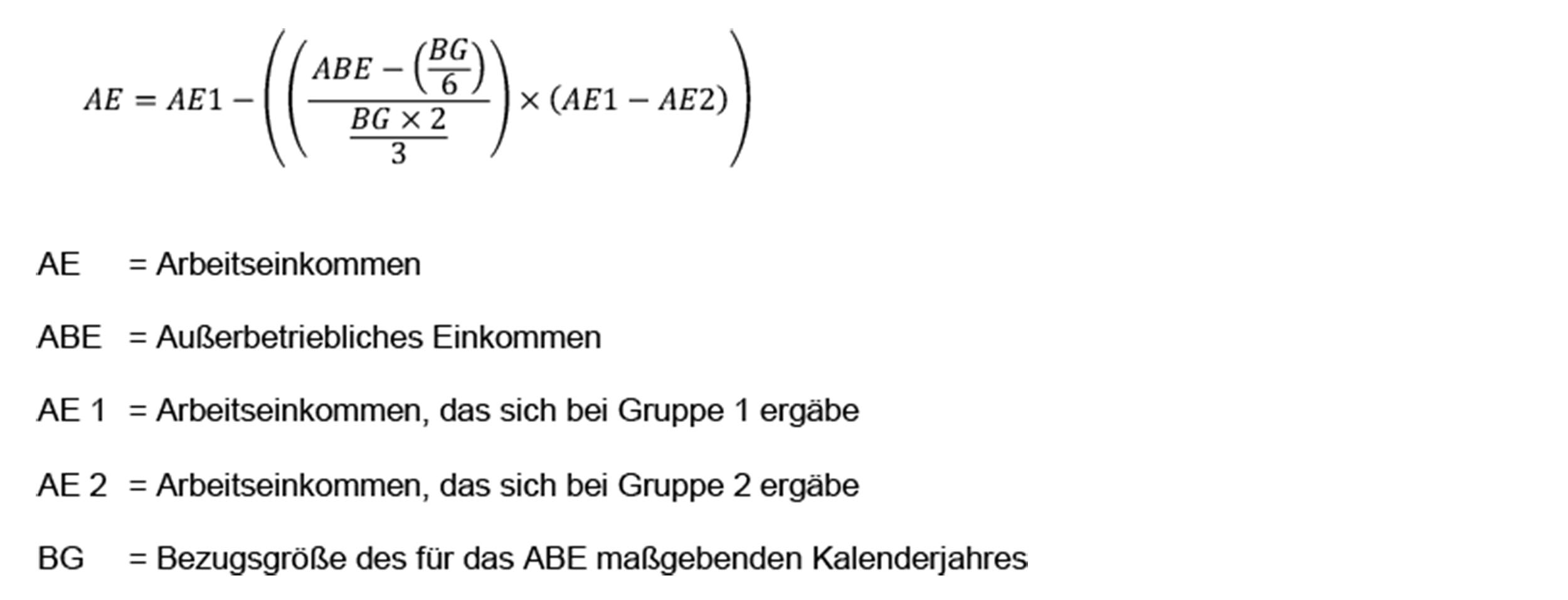der Differenzbetrag zwischen dem außerbetrieblichen Erwerbs- und Erwerbsersatzeinkommen des Unternehmers oder der Unternehmerin und einem Sechstel der Bezugsgröße des Jahres, für das dieses Einkommen zu ermitteln ist, durch zwei Drittel der Bezugsgröße dieses Jahres dividiert wird,