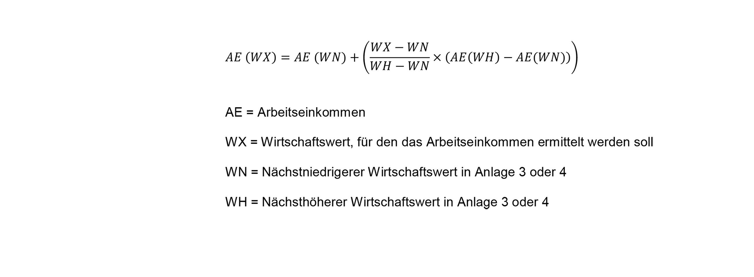 - dieses Produkt zu dem nach Satz 1 ermittelten Arbeitseinkommen, das dem nächstniedrigeren Wirtschaftswert der jeweiligen Anlage entspricht, addiert wird.