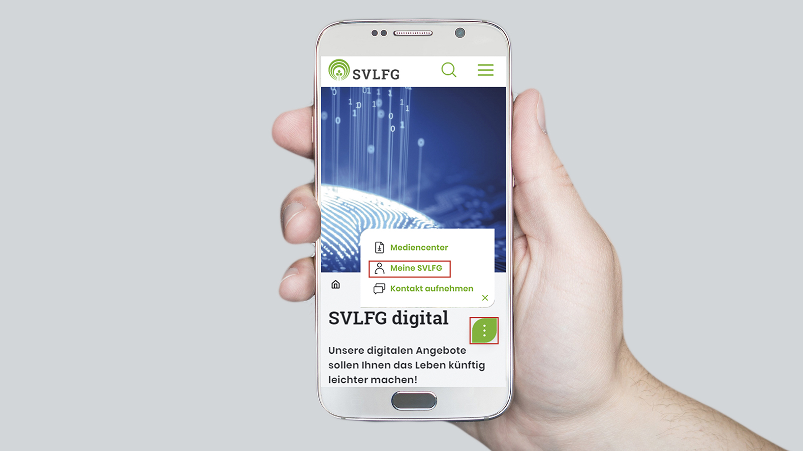 Wir möchten unter dem Motto "SVLFG digital" mit Ihnen gemeinsam in die digitale Zukunft gehen. Ziel ist es, Ihnen die Kommunikation mit uns zu erleichtern und das Online-Angebot stetig zu erweitern. Nutzen Sie unser neues Portal "Meine SVLFG".