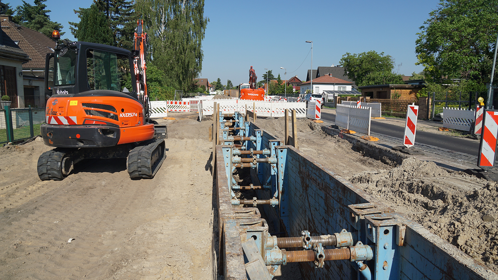 Spätestens ab 125 cm Grabentiefe abböschen oder verbauen, bei nicht standsicherem Boden oder bei Bodenstörungen bereits früher