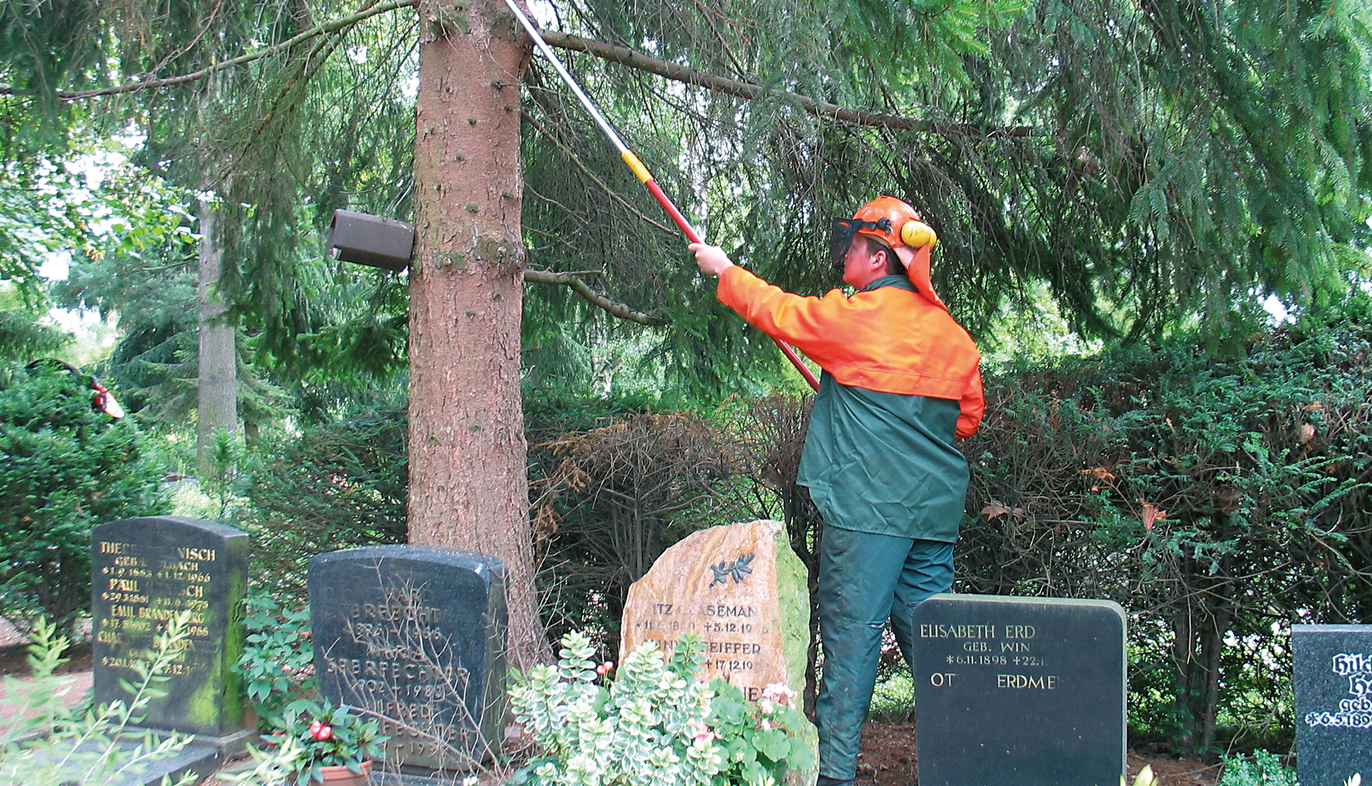 Dies gilt ganz besonders, wenn mit gefährlichen Werkzeugen, wie Kettensägen und Heckenscheren, gearbeitet wird.