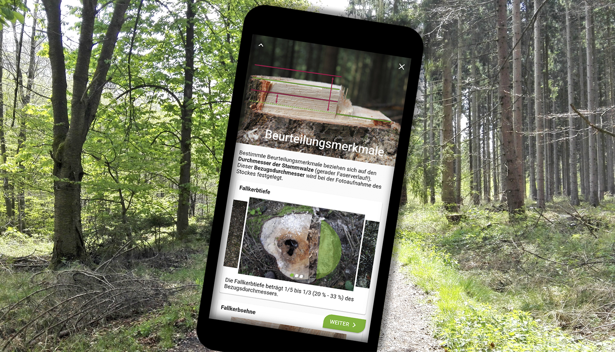 Mit der App "Stockfibel to go" haben Sie die Handlungshilfe zur Stockbeurteilung jederzeit zur Hand. Damit können Sie die Fachkunde bei der motormanuellen Fällung beurteilen.
