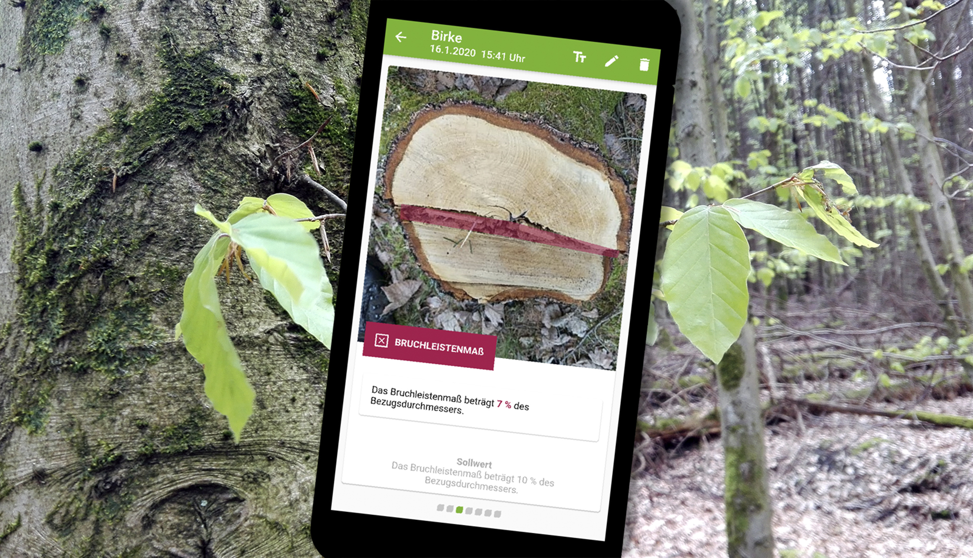 - Aufgenommene Stöcke können nachträglich bearbeitet werden. Dadurch muss man im Wald nur noch den Stock fotografieren und die eigentliche Beurteilung kann zu einem späteren Zeitpunkt erfolgen.
