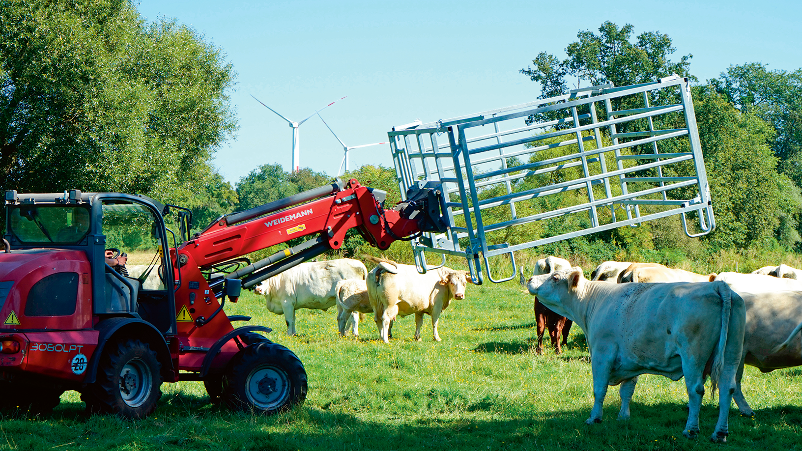 In wenigen Minuten aufgebaut, kann der Kälberfangkorb direkt mit dem Frontlader aufgenommen werden und ist sofort einsatzbereit.
