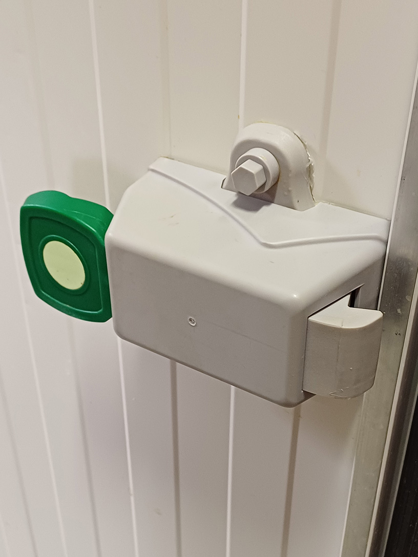 Bei Fischverarbeitungsmaschinen und Arbeitsmitteln stellen Betriebe sicher, dass alle Schutzeinrichtungen vorhanden sind und auch nach Reinigungsarbeiten wieder angebracht werden. Um im Notfall den Kühlraum verlassen zu können, ist eine Notentriegelung an der Innenseite der Kühlraumtür essenziell.