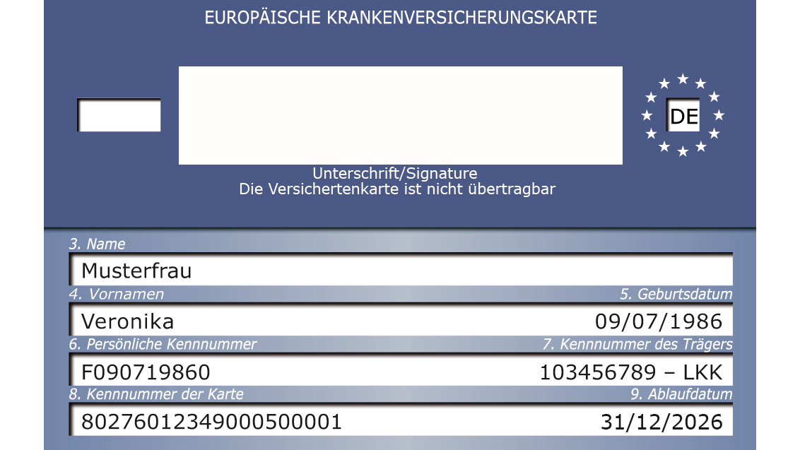 - auf der Rückseite: die Europäische Gesundheitskarte