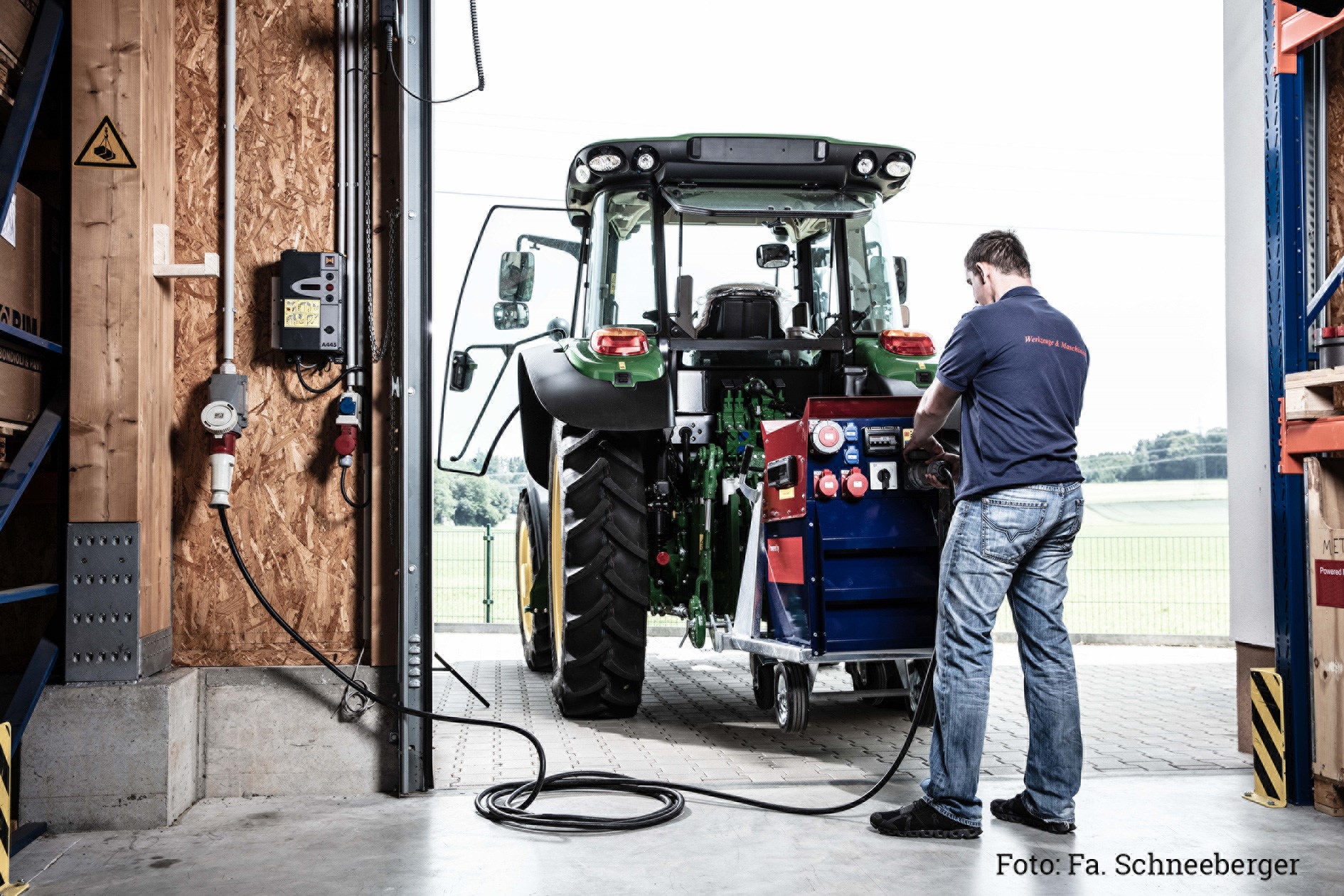 - Bei Zapfwellenantrieb müssen gut vom Fahrerplatz ablesbare Anzeigen für Frequenz und Spannung, optional Stromstärke (1 oder 3 Phasen), vorhanden und die Grenzbereiche farbig markiert sein.