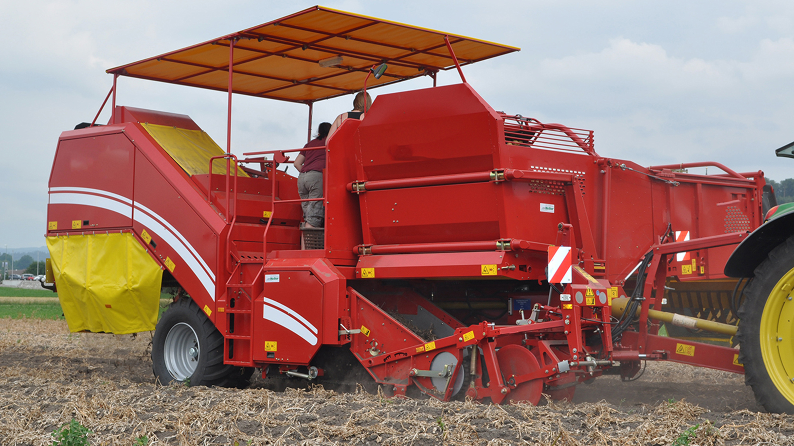 Kartoffelroder mit Sonnenschutzdach . Foto: Grimme
