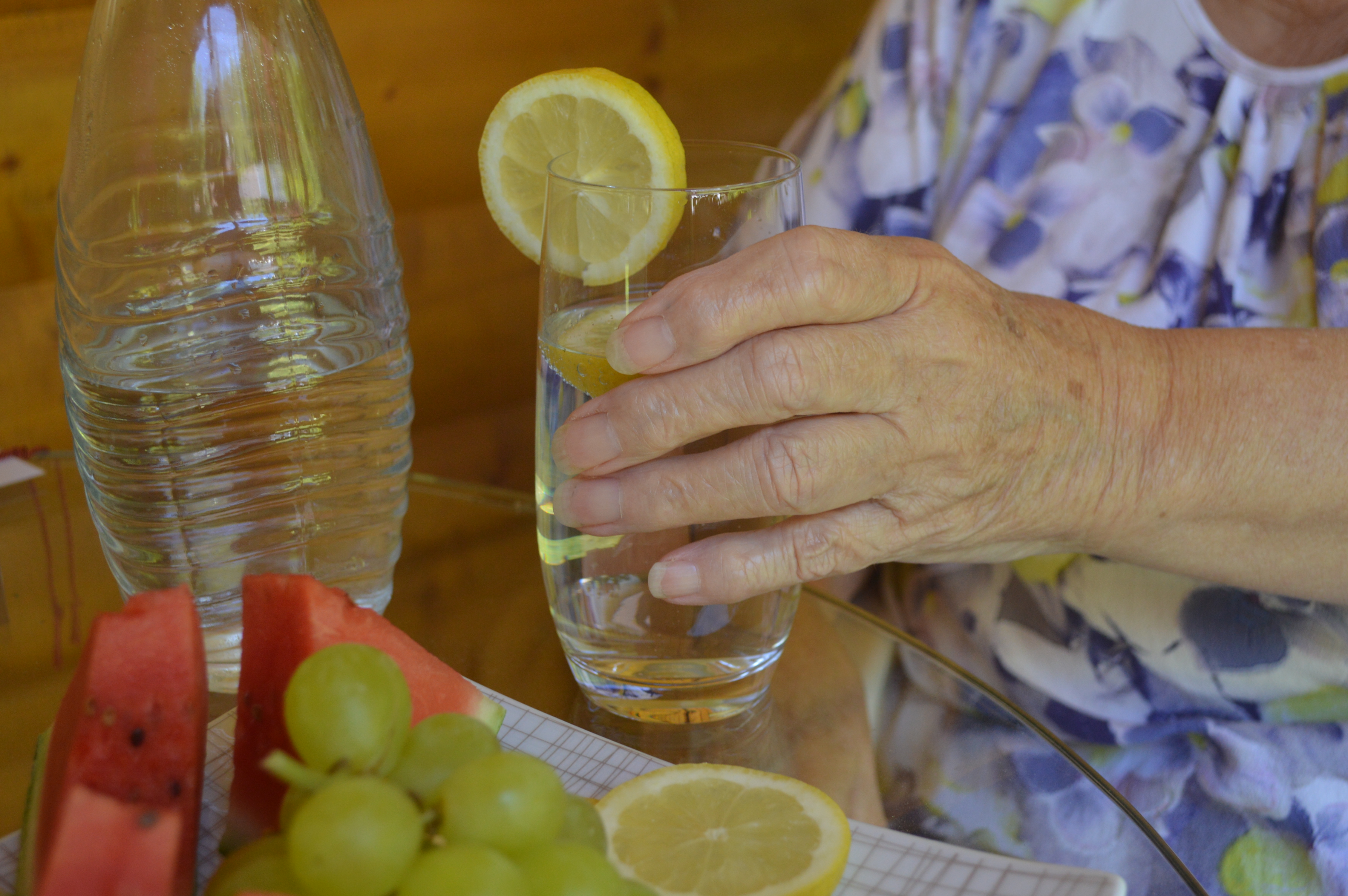 Mindestens 1,5-2 Liter Flüssigkeit sollten Pflegebedürftige täglich zu sich nehmen. Bei älteren Menschen lässt das Durstgefühl aber nach, so dass sie mitunter zu wenig trinken. Gerade bei großer Hitze ist die Gefahr einer Dehydrierung dann groß. Warnzeichen sind Fieber, Verwirrtheitszustände und übermäßige Erschöpfung. Bemerken Sie solche Anzeichen, rufen Sie den Notarzt. Damit es nicht soweit kommt, sollten Sie Ihren pflegebedürftigen Angehörigen häufig zuckerarme Getränke und erfrischende Kaltschalen anbieten. Alkohol und Koffein belasten den Kreislauf zusätzlich. Sie sollten deshalb gemieden werden. Apfelsaft-Schorle, gemischt aus zwei Teilen Mineralwasser und einem Teil Saft wirken ähnlich wie isotonische Getränke. Sie versorgen den Körper mit Mineralstoffen wie zum Beispiel Magnesium, Natrium und Kalium. Einen Überblick darüber, wieviel Flüssigkeit über den Tag verteilt aufgenommen wird, gibt ein Trinkprotokoll. Suppen zählen natürlich mit. Saftiges Obst und Gemüse, wie zum Beispiel Melonen und Gurken, helfen ebenfalls, die erforderliche Flüssigkeitsmenge zu erreichen. Auch ein Wassereis ist eine schöne Abwechslung.