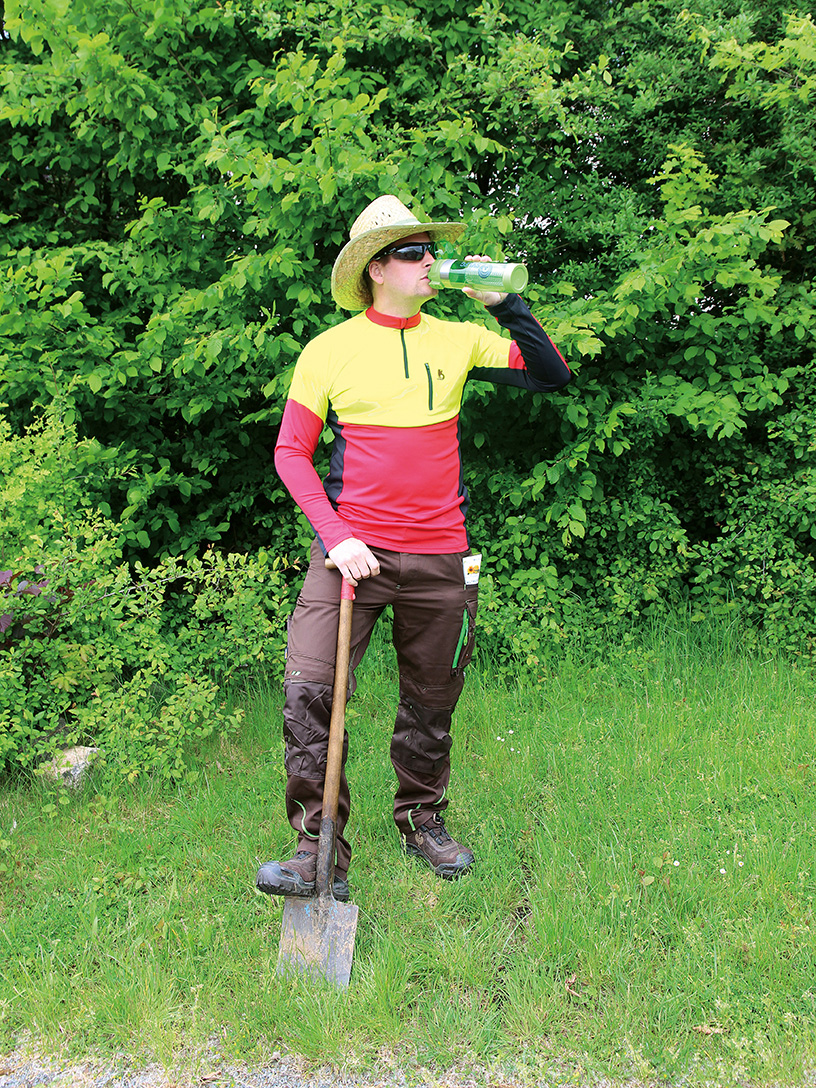 Hitze- und UV-Schutz gehen in der heißen Jahreszeit Hand in Hand. Arbeitskleidung muss funktionell, leicht und bequem sein sowie einen guten Schutz vor natürlicher UV-Strahlung bieten. Regelmäßige Trinkpausen beugen der Dehydrierung des Körpers vor.
