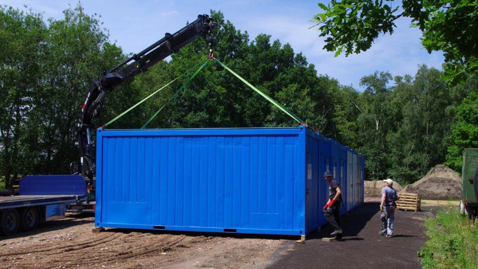 Familie Engelken-von Oehsen hat eine Vielzahl an Wohncontainern angeschafft, die mit maximal zwei Personen belegt werden. In einer Reihe stehen je zehn Wohncontainer sowie ein Sanitärcontainer. Die Wohncontainerreihen haben einen ausreichend großen Abstand zueinander und die Zugänge der Container sind voneinander abgewandt.