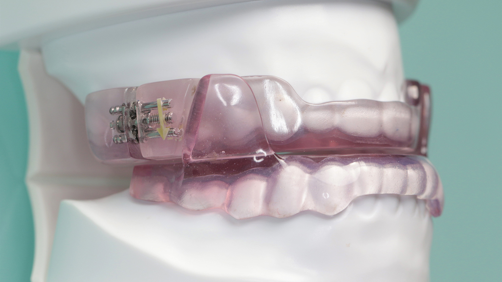 Dr. med. dent. Susanne Schwarting: „Sie wird im Schlaf auf der oberen und unteren Zahnreihe getragen und hält über kleine Verbindungselemente den Unterkiefer mit der Zunge leicht vorne. So bleibt der Atemweg im Rachen frei und die Atemaussetzer sowie das Schnarchen werden verhindert.“
