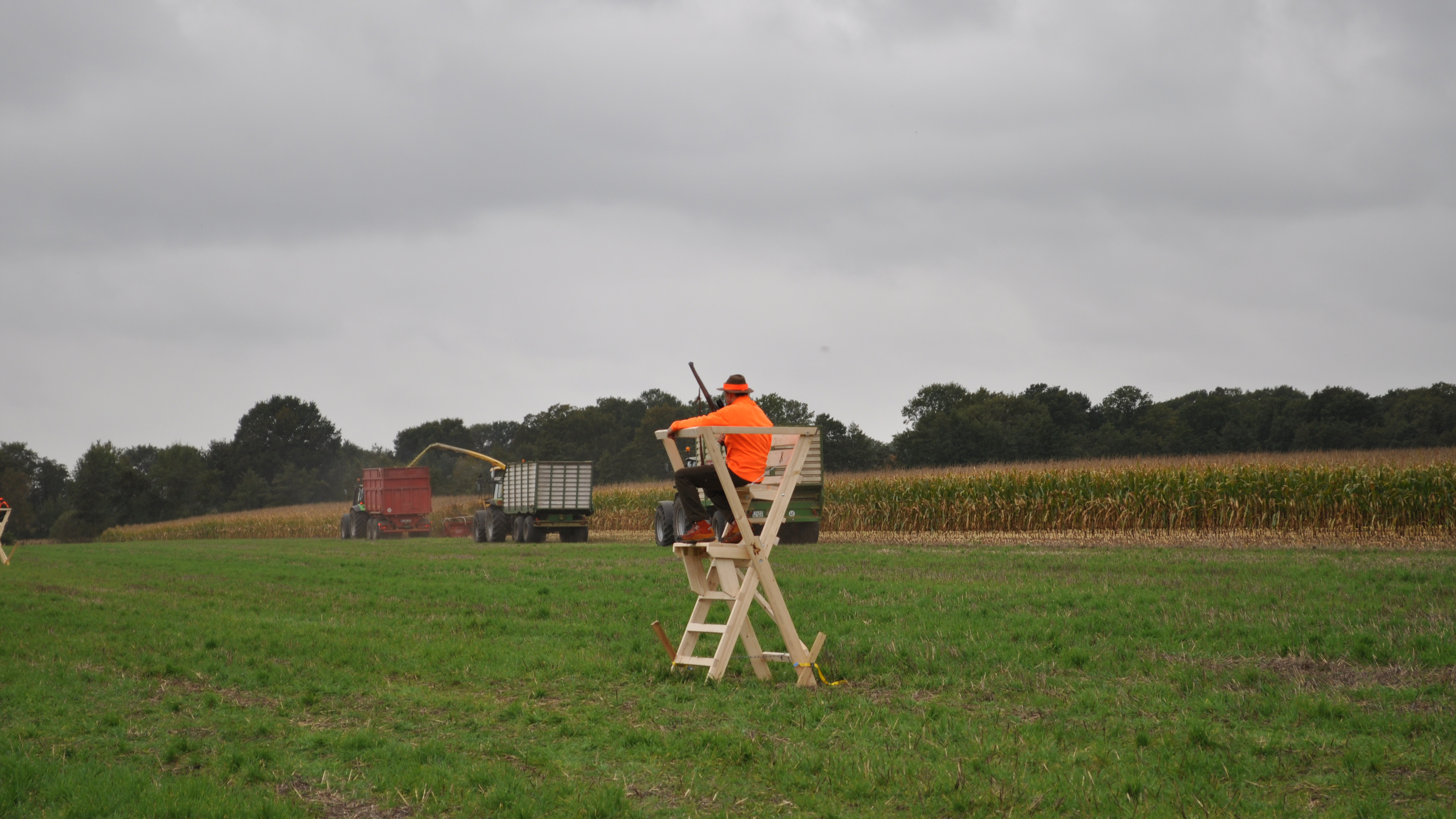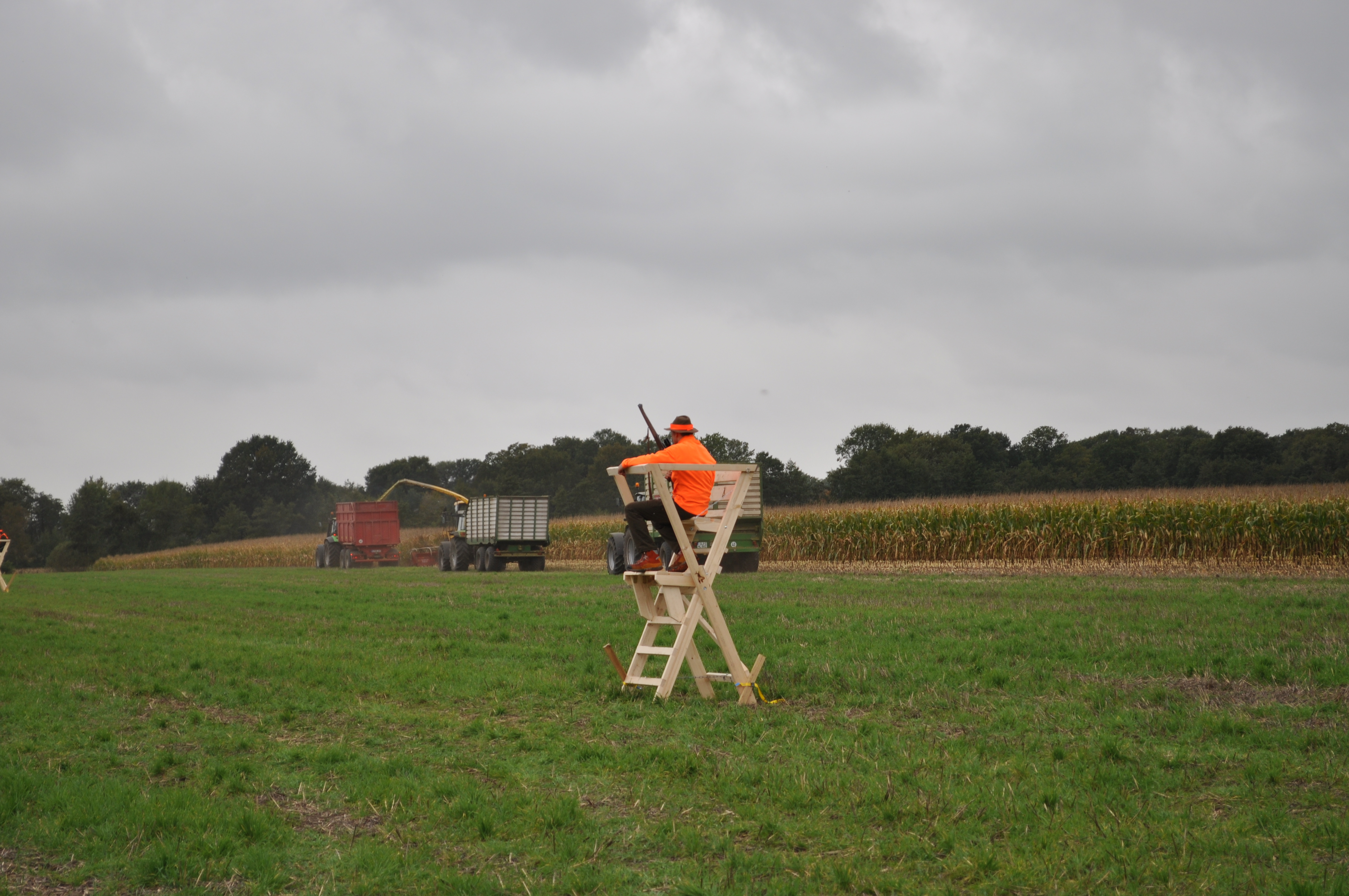 - Eine Absprache sowie Kommunikationsregeln und -möglichkeiten (zum Beispiel Mobiltelefon oder Funk) mit den Erntemaschinenführern und den Jagdteilnehmern sind zu vereinbaren (zum Beispiel das Abblasen des „Treibens“, da beschossenes Wild in das zu beerntende Feld zieht oder ein Umsetzen/Nachrücken der mobilen Jagdeinrichtungen durch den Erntefortschritt erforderlich ist).