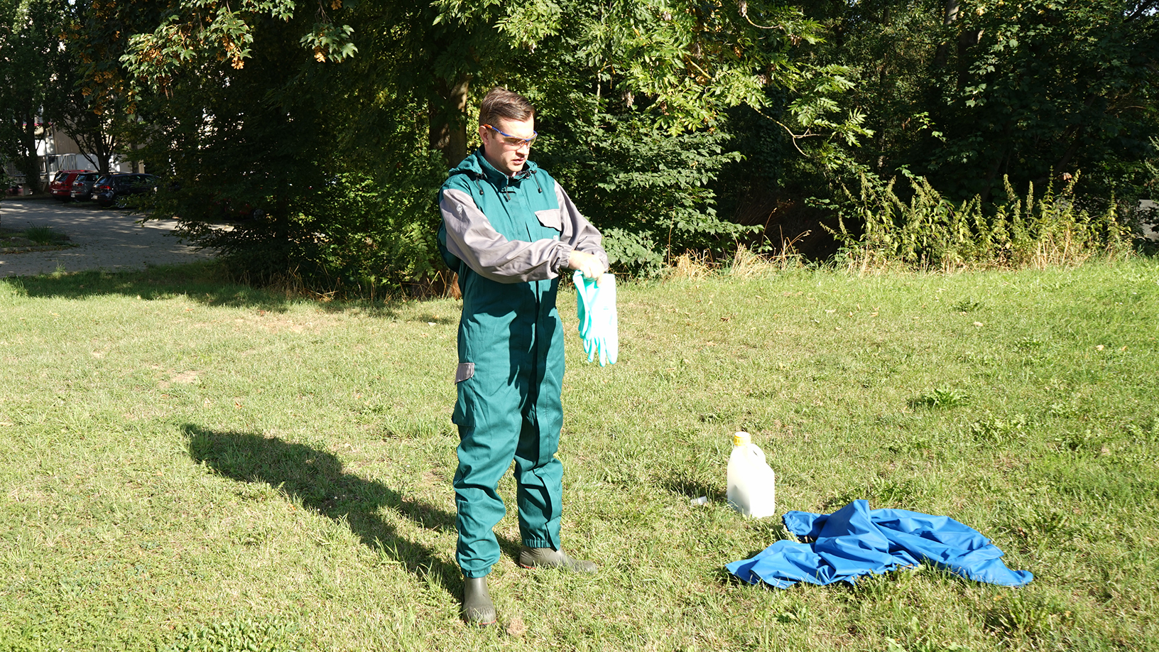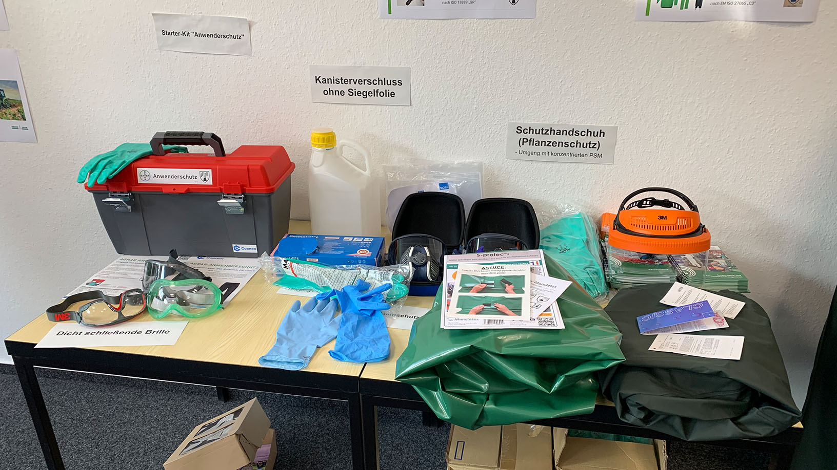 In der begleitenden Ausstellung hatten die Teilnehmenden die Möglichkeit, moderne Persönliche Schutzausrüstung (PSA) kennenzulernen. Zu den Exponaten gehörte neben Schutzkleidung für den Umgang mit konzentrierten Pflanzenschutzmitteln erstmalig auch PSA für Nachfolgearbeiten.