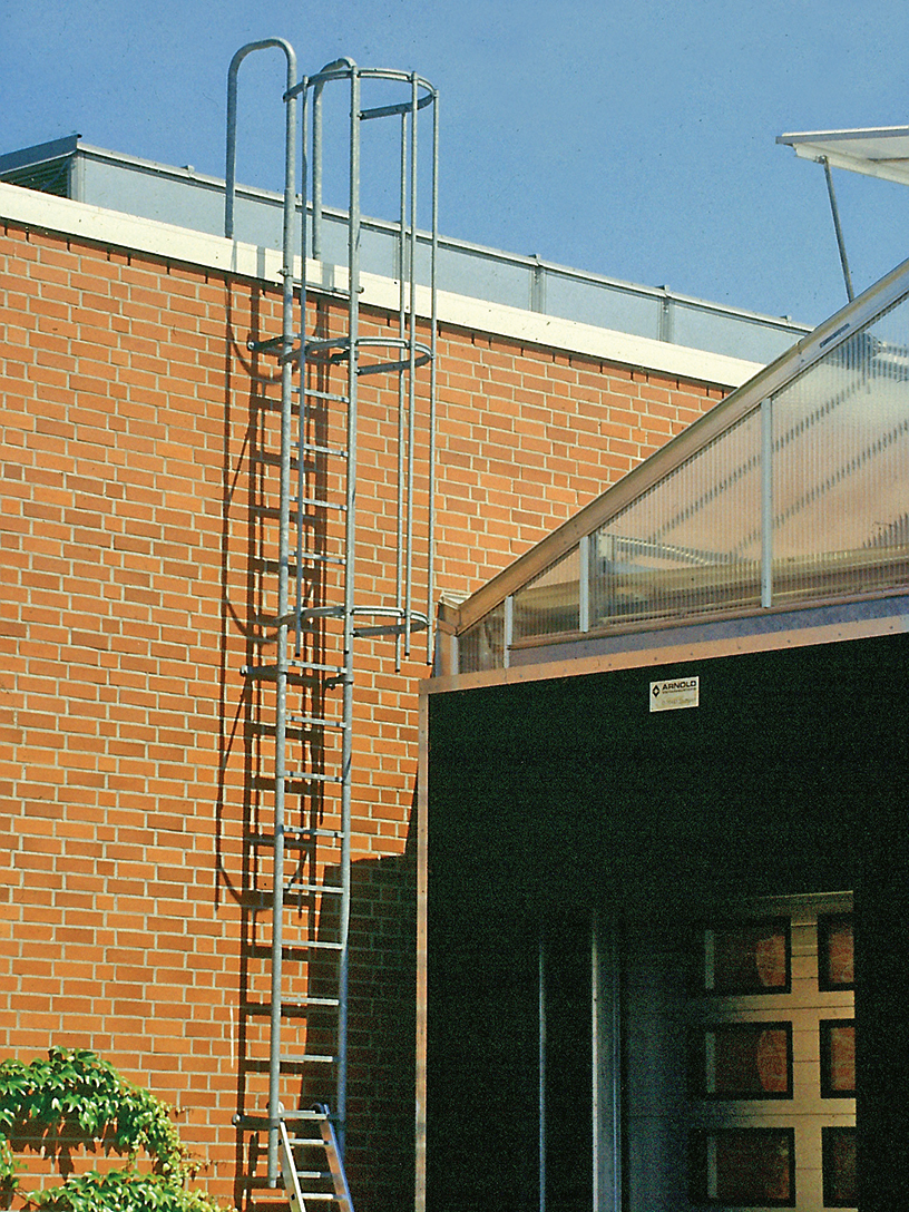Steigleitern dienen dem Zugang zu baulichen Anlagen und deren Einrichtungen, wie Dachflächen, Silos oder auch dem Einstieg in Schächte.