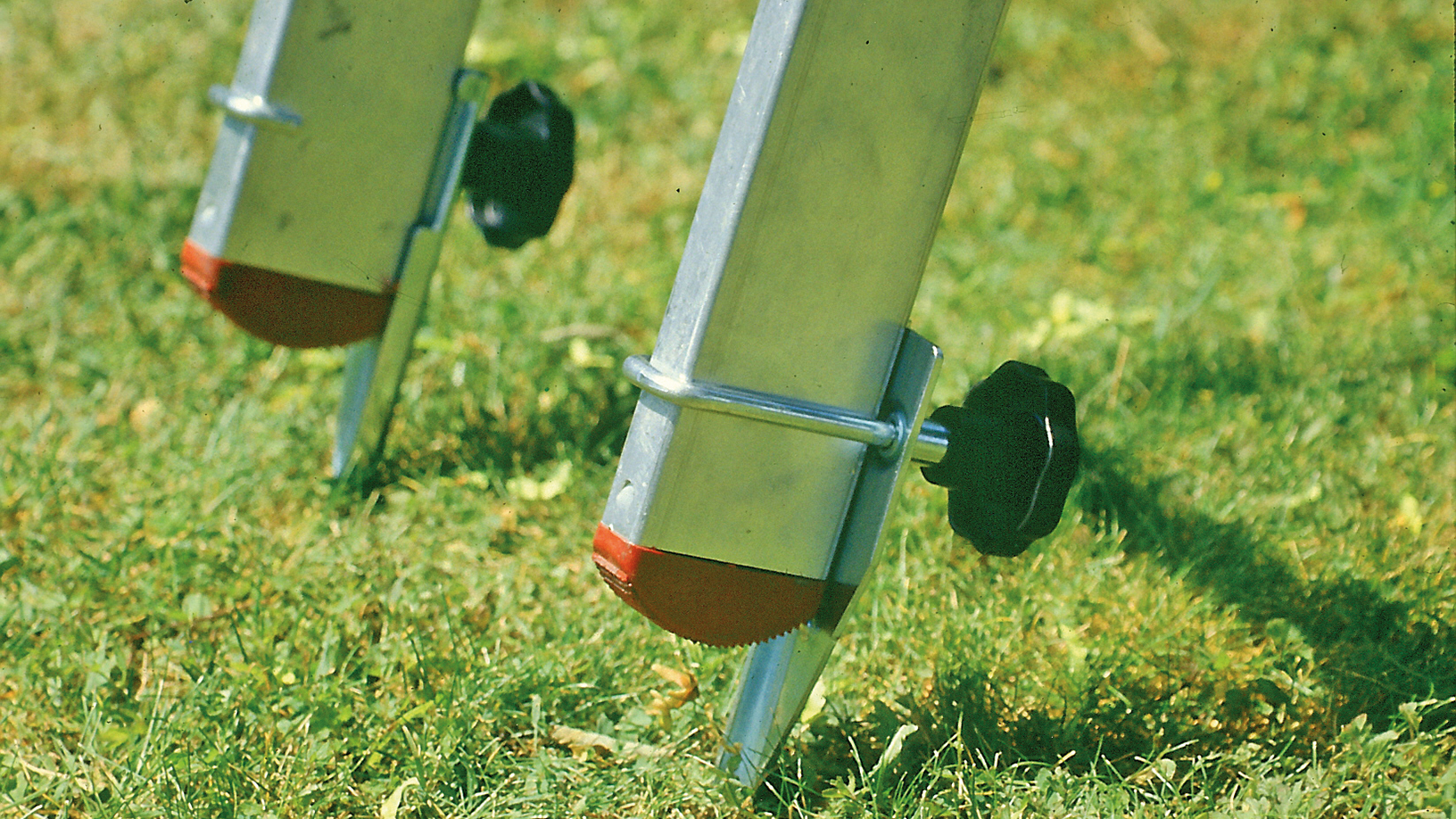 Auf natürlichem, unbefestigtem Erdboden/Grünflächen etc. sind Leitern mit mindestens 7 cm langen Metallspitzen geeignet.