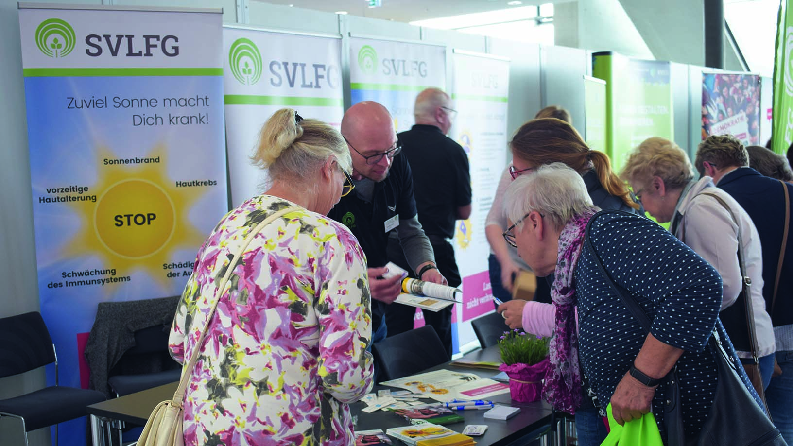 Beim Verbandstag des LandFrauenverbandes Württemberg-Baden e. V. informierten unsere Fachleute über Maßnahmen zum UV- und Hautschutz und gaben Auskünfte zur Betriebs und Haushaltshilfe, zur Absicherung im Alter, zu Leistungen der Pflegekasse und zu unseren Gesundheitsangeboten. Im Sinne des Mottos der LandFrauen Miteinander Zukunft gestalten konnten wir die rund 1.200 LandFrauen für diese Themen begeistern und als Multiplikatorinnen gewinnen. Informationen zu den genannten Themen gibt es unter www.svlfg.de