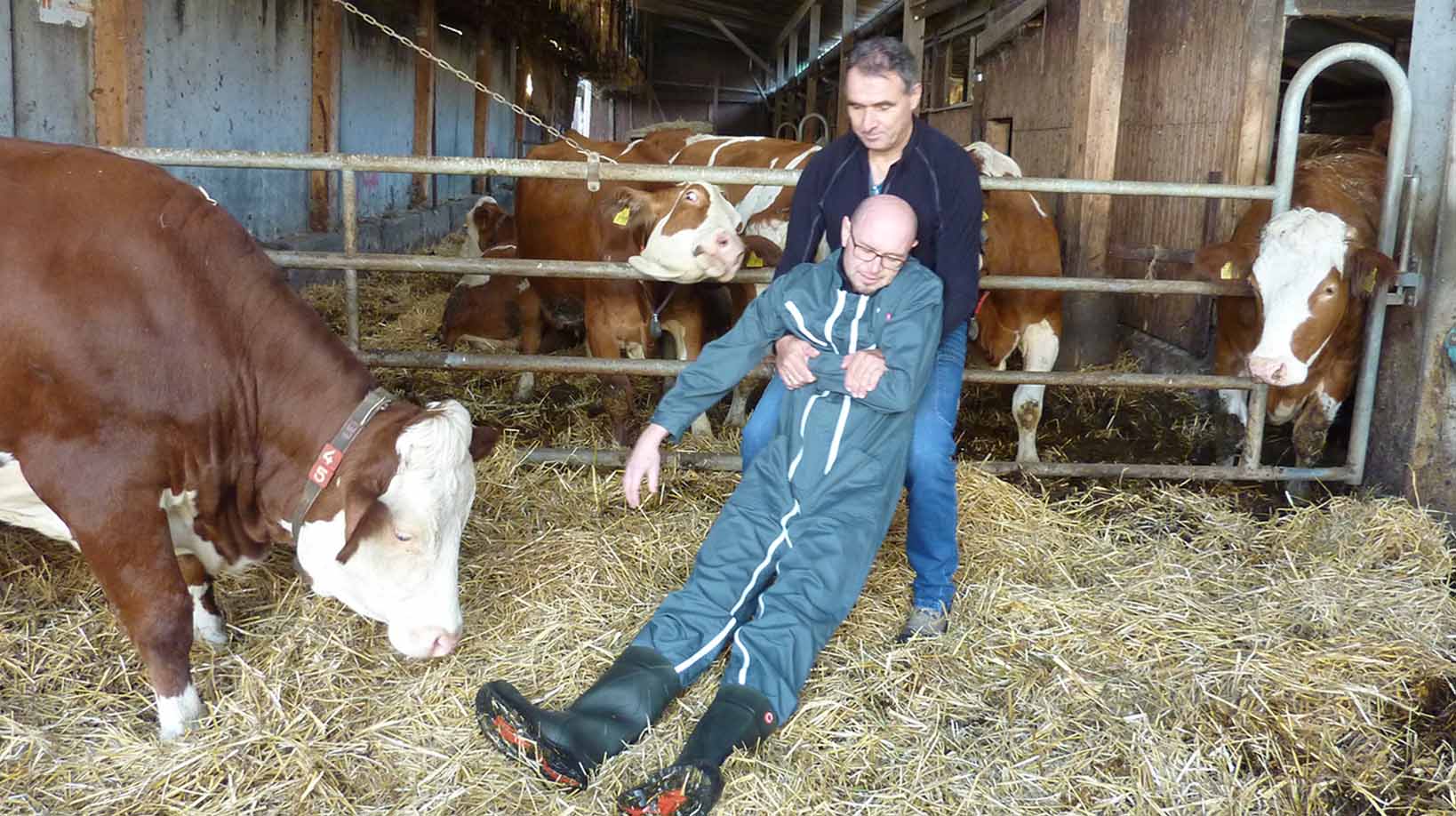 Vor der Scheune kommt ein Landwirt auf dem leicht abschüssigen und feuchten Weg ins Rutschen und schlägt auf dem harten Boden auf. Regungslos bleibt er liegen, am Kopf ist etwas Blut.