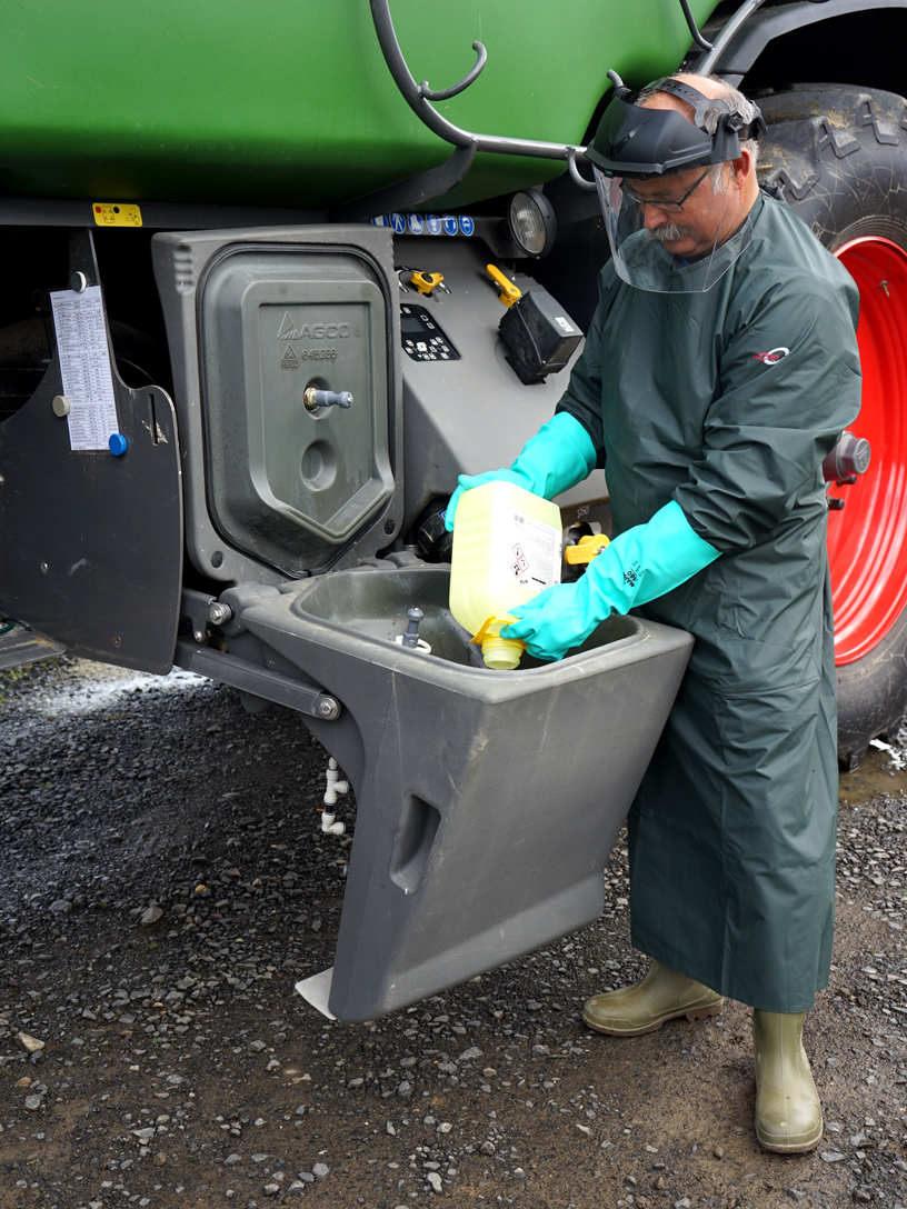 - Ansetzen der Spritzflüssigkeit und Befüllen des Pflanzenschutzgerätes,