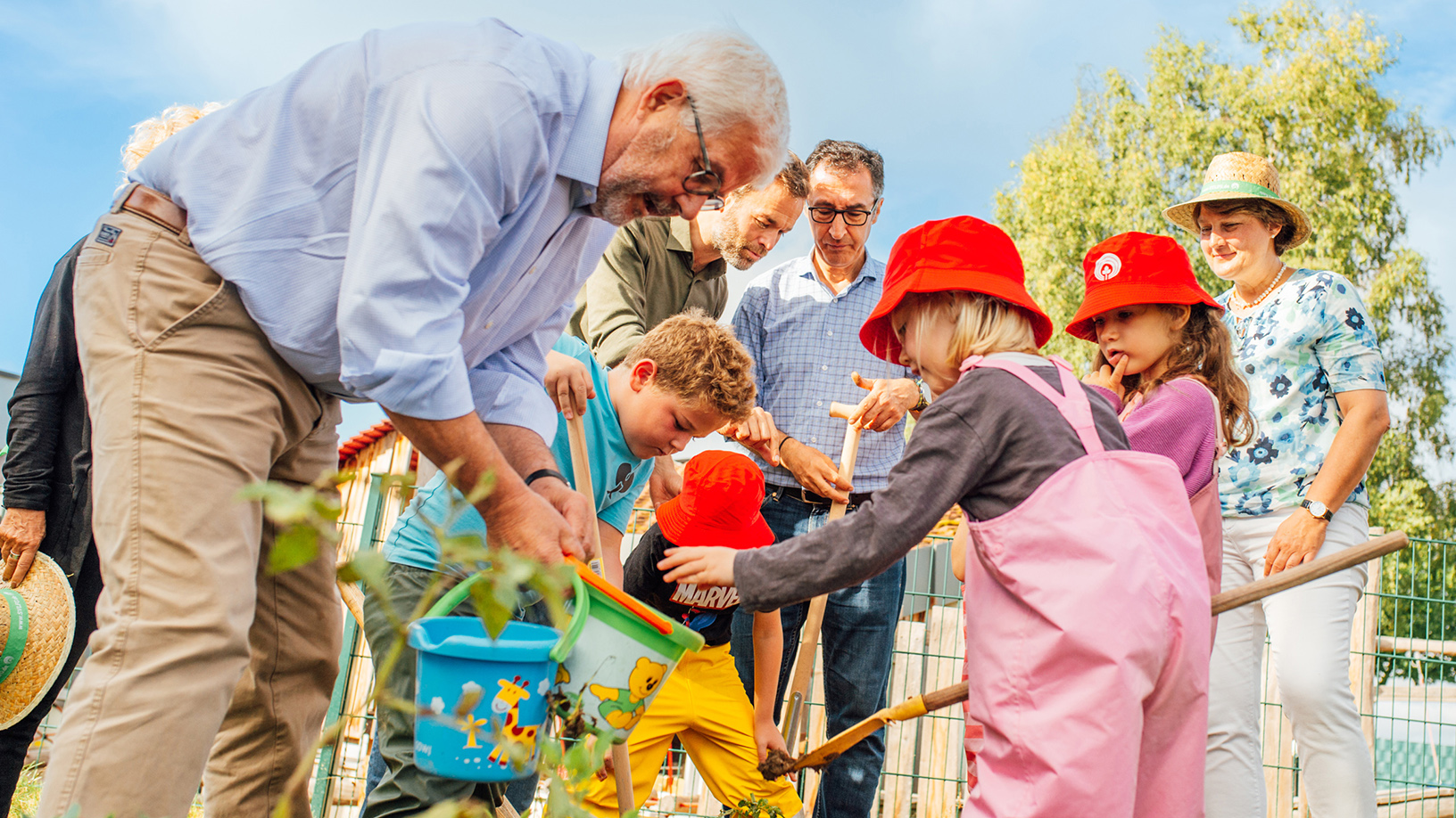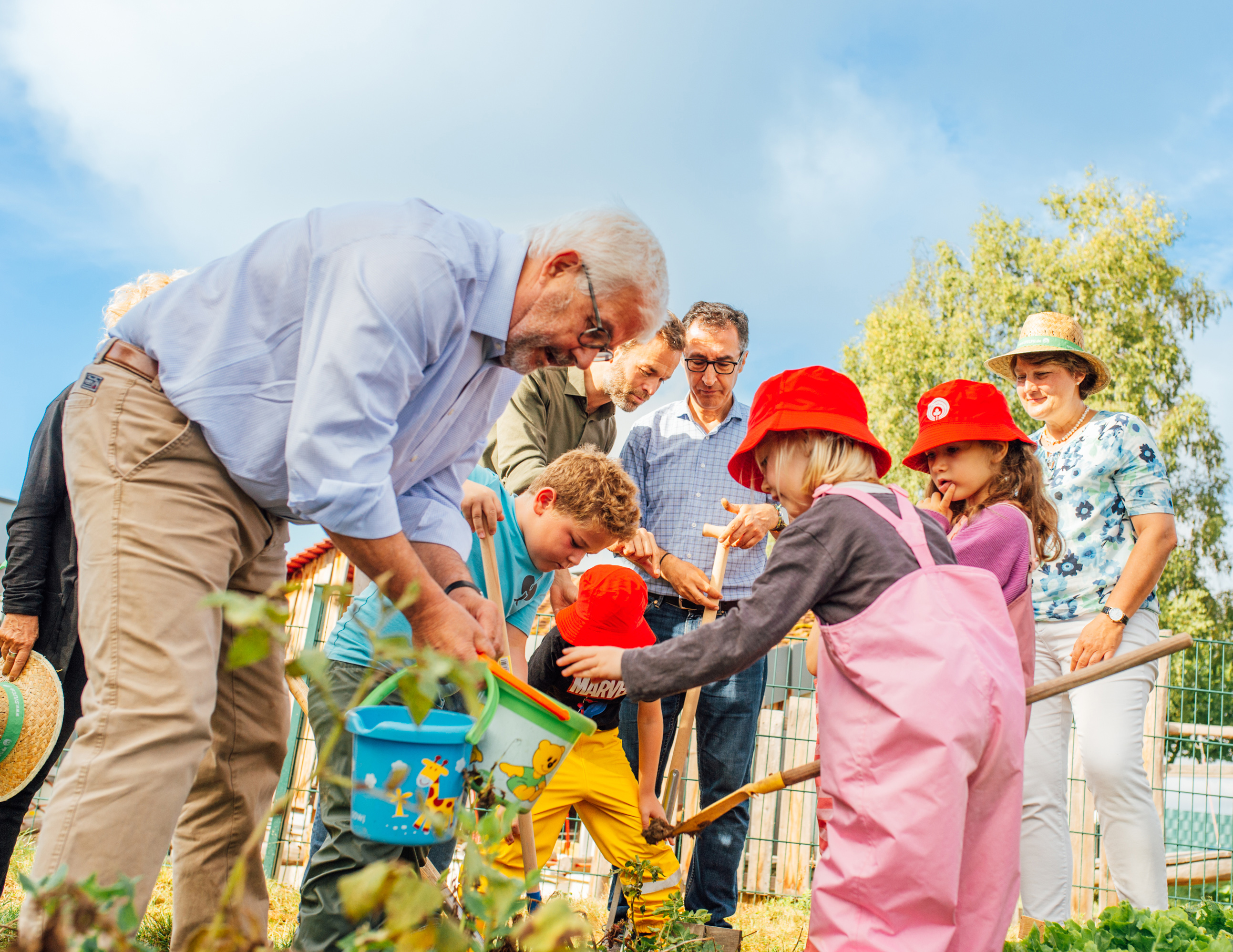 Bundesminister Özdemir mit SVLFG auf Kindergarten-Acker