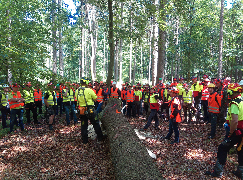 Teilnehmende waren private und kommunale Waldbesitzer, forstliche Beschäftigte und Forstunternehmer, Förster, Fachkräfte für Arbeitssicherheit sowie Sicherheitsbeauftragte. Vor Ort waren auch Thomas Schröder, Vorstandsmitglied der SVLFG aus Quickborn, und Dr. Marcel Strunk, Geschäftsführer des Deutschen Forstunternehmerverbandes.