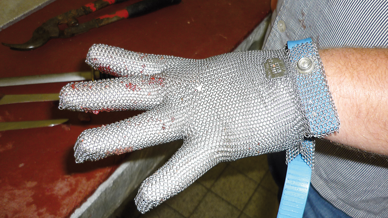 Beim Zerwirken schützt die richtige Ausrüstung: Kettenhandschuhe bieten zuverlässigen Schutz vor Schnittverletzungen.