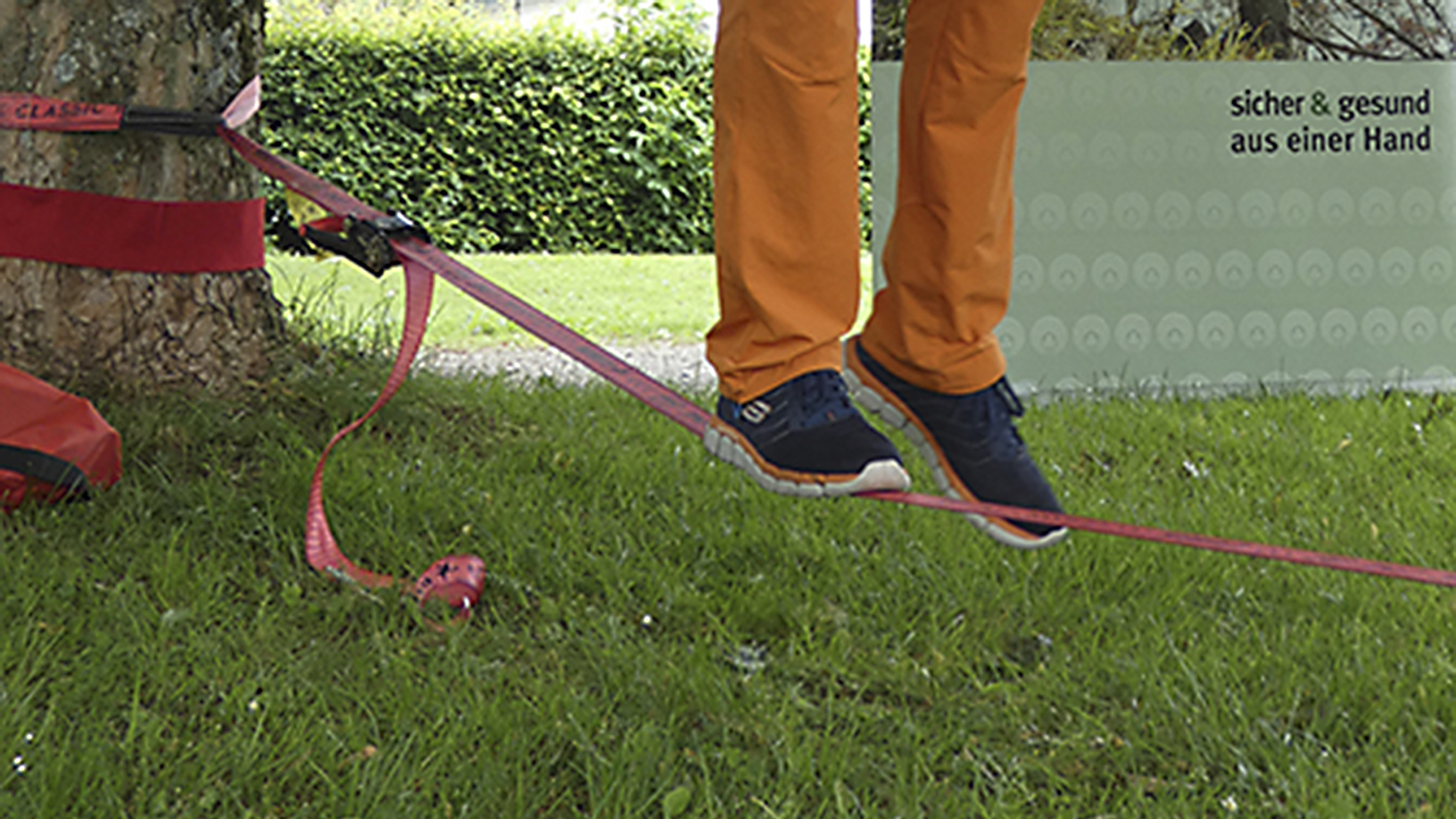 Lernen Sie mit dem Slackline-Training eine einfache und kostengünstige Sturz- und Fallpräventionsmaßnahme kennen, die Sie gut in Ihren betrieblichen Alltag integrieren können.