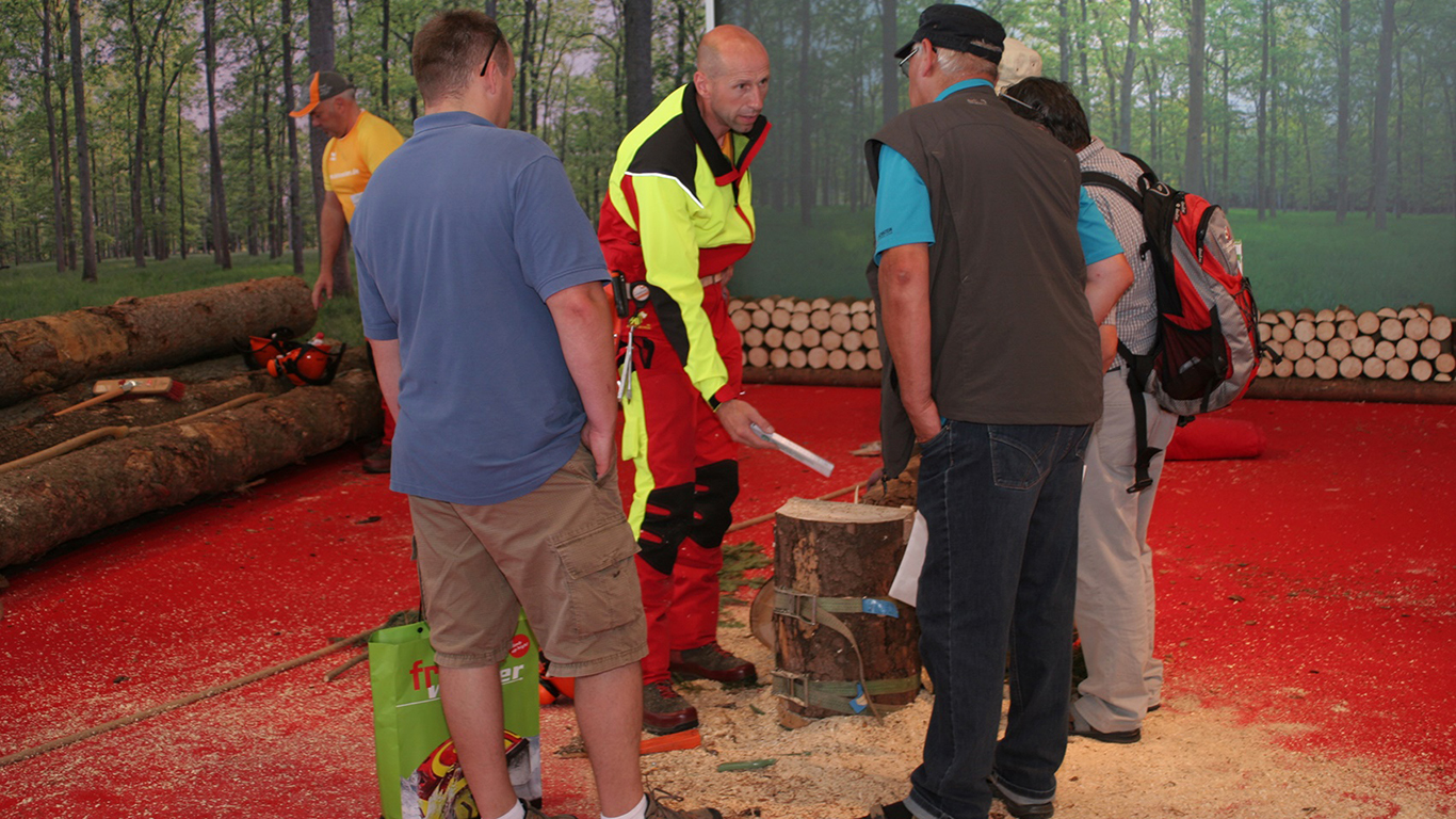 Waldarbeit wird erst durch eine sorgfältige Baumbeurteilung und die richtigen Arbeitsverfahren sicher. Das zeigt die SVLFG bei der Praxisvorführung „Sichere Baumfällung unter besonderer Beachtung der Schadholzproblematik“. Baumkletterer demonstrieren darüber hinaus, warum Arbeiten in Baumkronen in die Hände von Fachleuten gehören. Ein weiterer Versuchsaufbau und ein Fällrichtungssimulator zeigen, wie unerwartet sich Bäume bei der Fällung verhalten können.