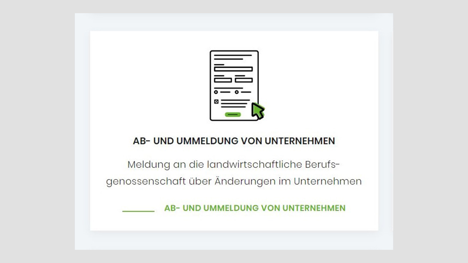 Vergrößerung des Bildes für Kachel "Ab- und Ummelden von Unternehmen" im Versicherten-Portal der SVLFG.